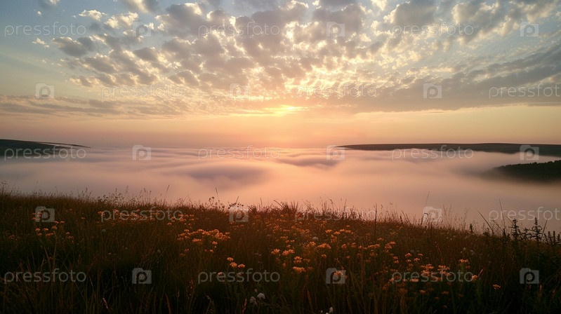 Монохромный фон над землей, туман на фоне рассвета