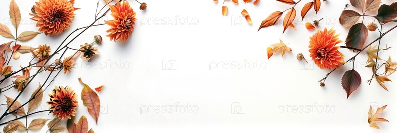 Белый сплошной фон с оранжевыми хризантемами по краям со свободным пространством