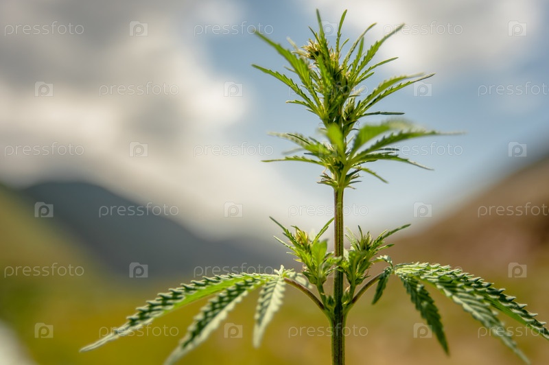 Куст дикорастущей конопли в высокогорьях Кыргызстана