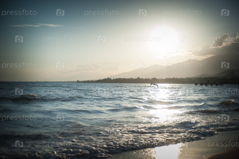 Закат на берегу горного озера Иссык-Куль Киргизия