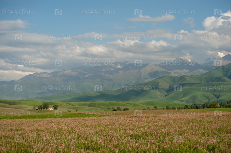 Горный весенний пейзаж, природа Бишкек, Кыргызстан