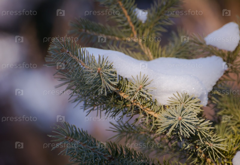 Зеленые ветки елки под снегом