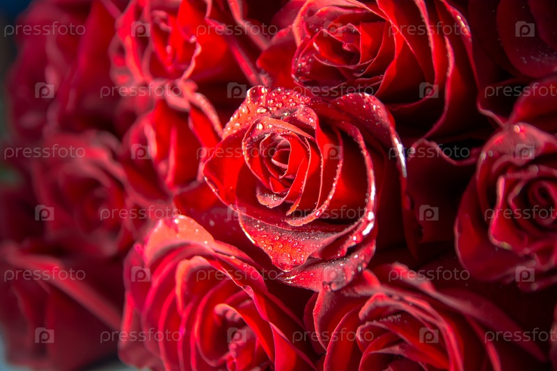 Букет бордовых роз, цветочные бутоны в качестве фона