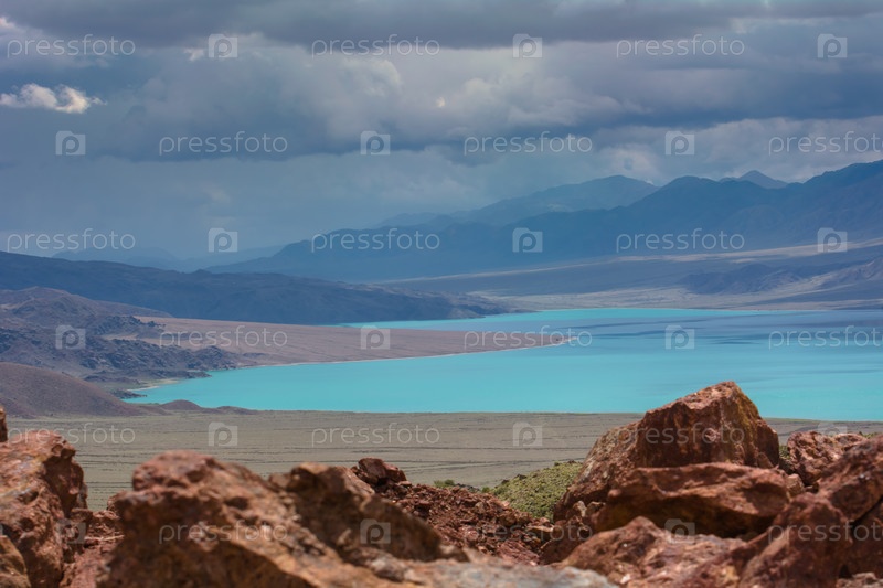 Панорама водотока Ортотокой с березовым цветом воды, Кыргызстан