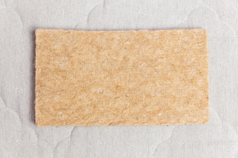 Прямоугольный образец термопрессованного фетра, используемый при производстве современных матрасов с независимыми пружинными блоками. Вид сверху