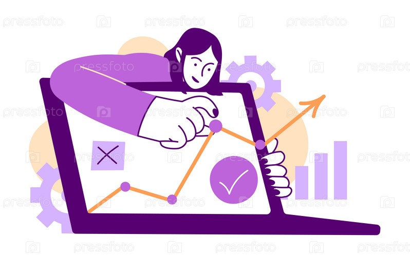 Ноутбук, женщина расставляет точки на графике