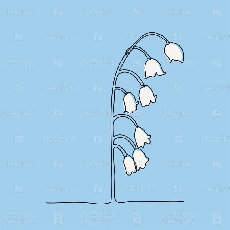 Цветок ландыша нарисован вручную в минималистическом стиле, в технике одинарной линии, монолинии. Символ косметики, логотип салона красоты. Вектор