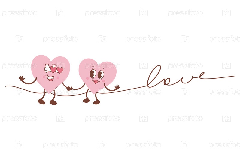Иллюстрация двух сердец и надписи «любовь». Пара сердец. Модная минималистская иллюстрация