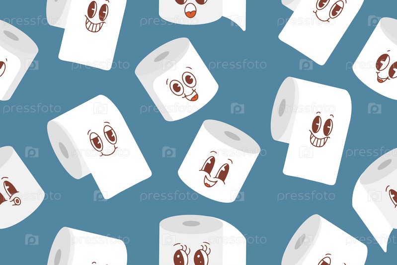 Бесшовный узор с милыми мультяшными рулонами туалетной бумаги Каваи с лицами