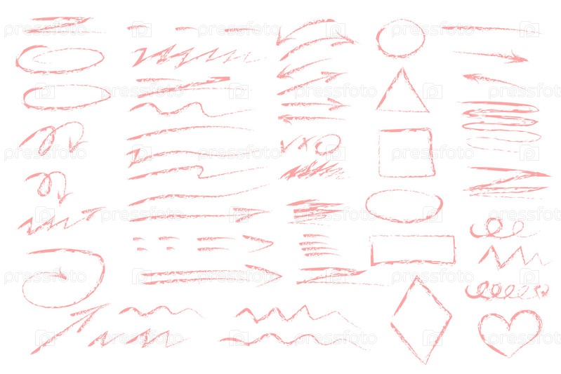 Красочные следы сухой кисти, карандашные закорючки и каракули. Ручной рисунок векторного карандаша различных линий, спиралей и рисунков, штрихов мелом, разделителей карандашей. Фигурные линии. Векторная иллюстрация. Векторная иллюстрация