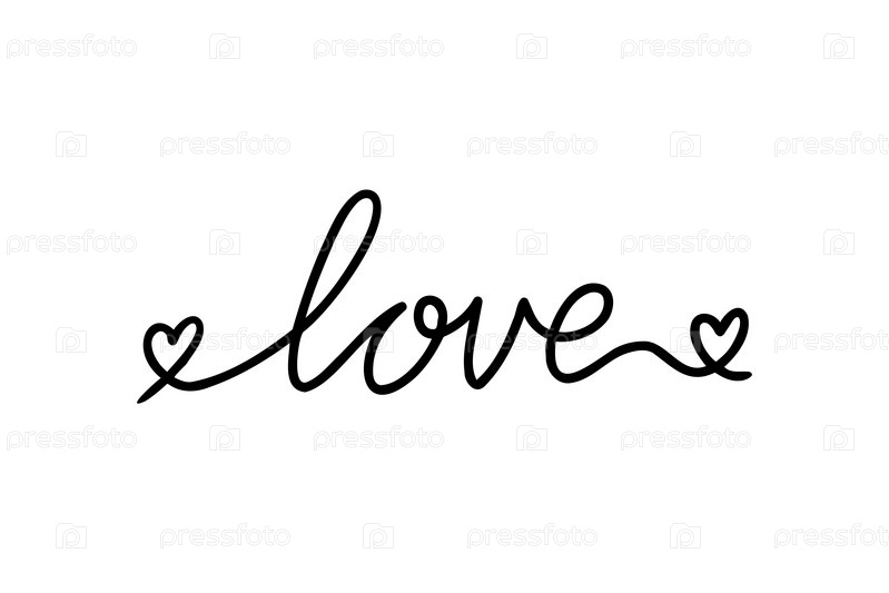 ЛЮБОВЬ. Непрерывная строка рукописного текста любовь. Письменная векторная иллюстрация для плаката, открытки, баннера ко Дню святого Валентина, свадьбы. Нарисованное вручную слово - любовь с каракулями в сердце. Векторная иллюстрация