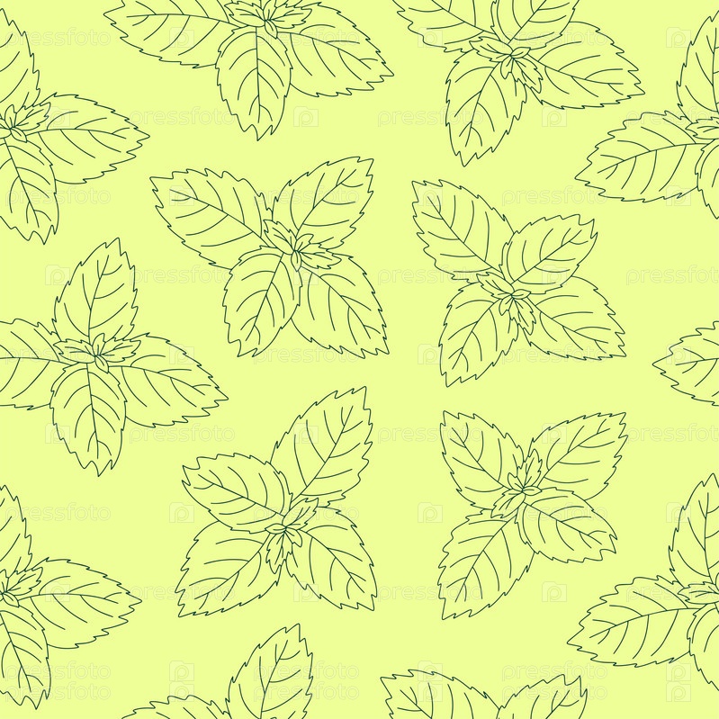Бесшовный рисунок иконы мятного листа. Изолированная иллюстрация значка листа мяты в линейном стиле на зеленом фоне