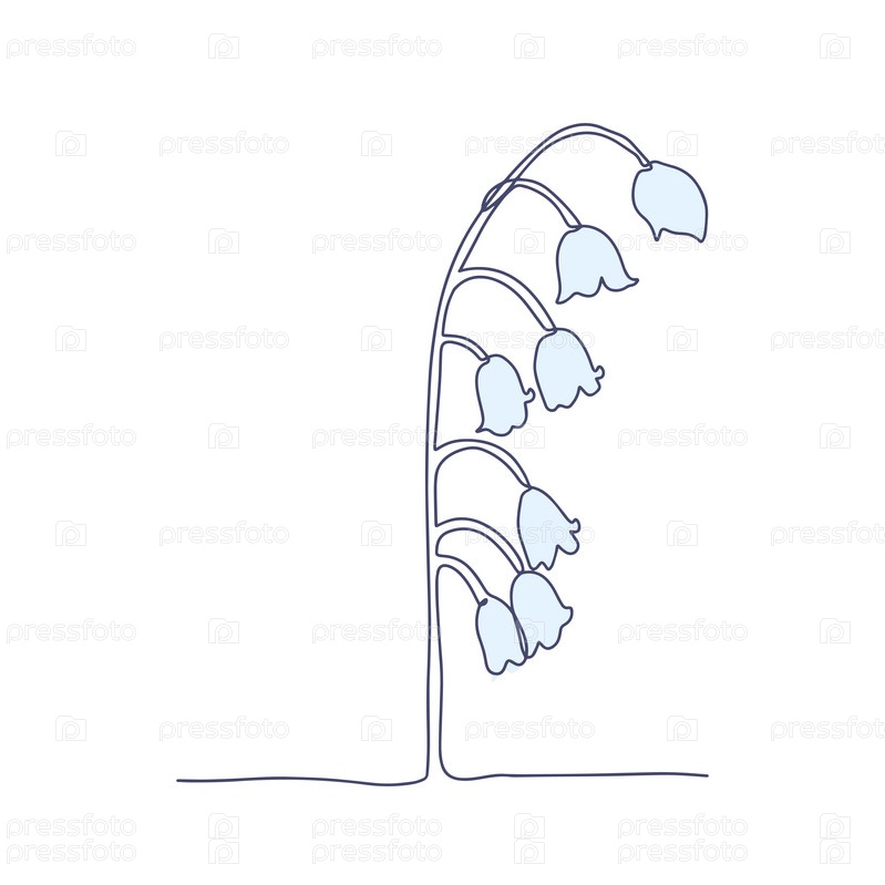 Цветок ландыша нарисован вручную в минималистическом стиле, в технике одинарной линии, монолинии. Символ косметики, логотип салона красоты. Вектор