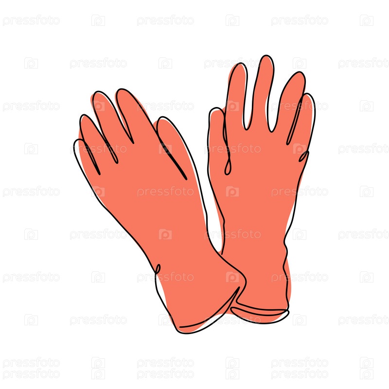 Перчатки в одну линию. Латексные перчатки как символ защиты от вирусов и бактерий. Значок меры предосторожности. Вектор