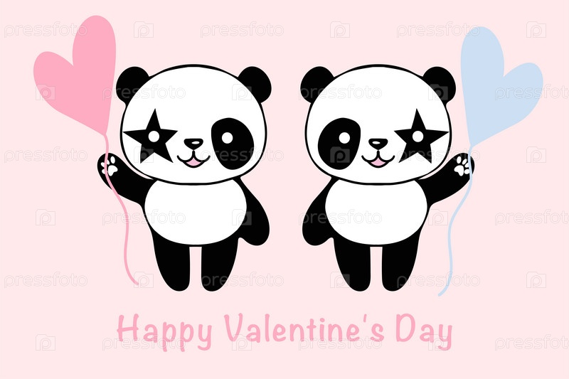 Валентинка с милыми пандами и сердечками. Понятие любви. Иллюстрация на белом фоне