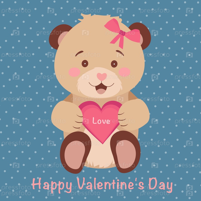 Милый плюшевый мишка держит в лапах сердце. Рисунок ко Дню святого Валентина, День плюшевого мишки. Векторная иллюстрация