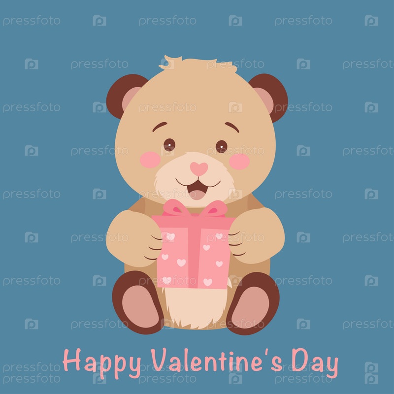 Милый плюшевый мишка держит в лапках подарок. Рисунок ко Дню святого Валентина, Дню мишки Тедди. Векторная иллюстрация. Вектор