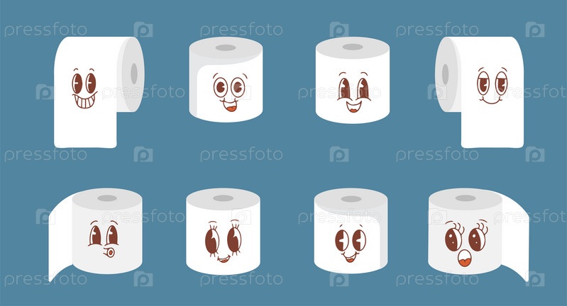 Милый счастливый персонаж туалетной бумаги. Векторный набор смайликов туалетной бумаги. Забавный улыбающийся и моргающий мультяшный смайлик в плоском стиле смайликов