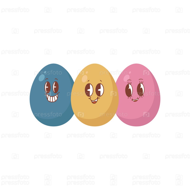 Набор яиц в стиле Каваи и надпись «С Пасхой». Векторная иллюстрация изолирована на белом фоне