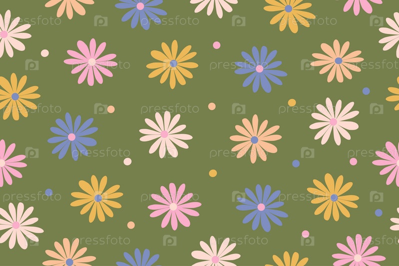 Садовые цветы, растения, ботанический, бесшовный векторный дизайн для моды, тканей, обоев и всех принтов. Маленькие яркие цветы. Векторная иллюстрация