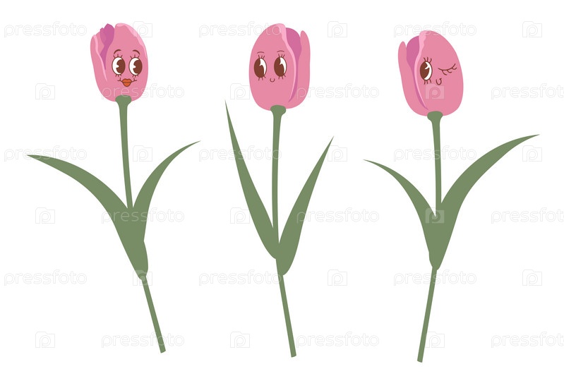 Векторный набор изолированных розовых тюльпанов. Тюльпаны в стиле кавай