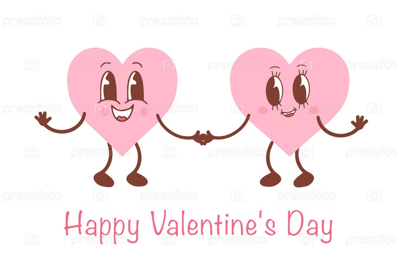 Симпатичные мультяшные сердечки. Симпатичные символы любви с лицами в разных позах, руками и ногами, забавными положительными эмоциями. Векторная иллюстрация ко Дню святого Валентина