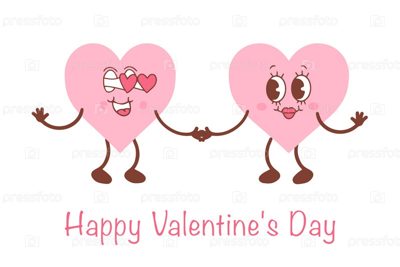 Симпатичные мультяшные сердечки. Симпатичные символы любви с лицами в разных позах, руками и ногами, забавными положительными эмоциями. Векторная иллюстрация ко Дню святого Валентина