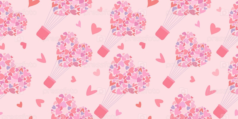 Бесшовный рисунок летающих воздушных шаров с сердечками. Фон для печати на текстиле и бумаге. Подарочная упаковка ко Дню святого Валентина. Векторная иллюстрация. Векторная иллюстрация