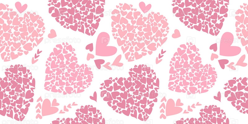 Бесшовный фон из сердец. Набор красивых сердец. Векторная иллюстрация на белом фоне