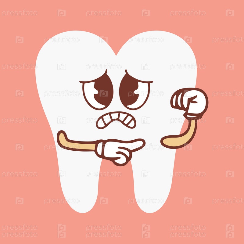 Забавный здоровый белый коренной зуб с грустным плачущим лицом, ретро-мультяшный талисман зубов, наклейка на стоматологию и стоматологическую помощь векторной иллюстрации 70-х 80-х годов. Векторная иллюстрация