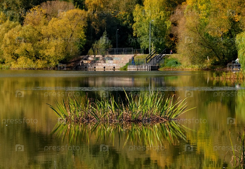 Россия. Москов Покровское Стрешнево Парк. Осенний вид на берег озера в городском парке