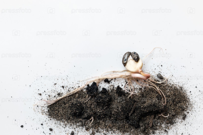 Выросшее зерно с корнями, декоративное садовое растение (Ricinus)