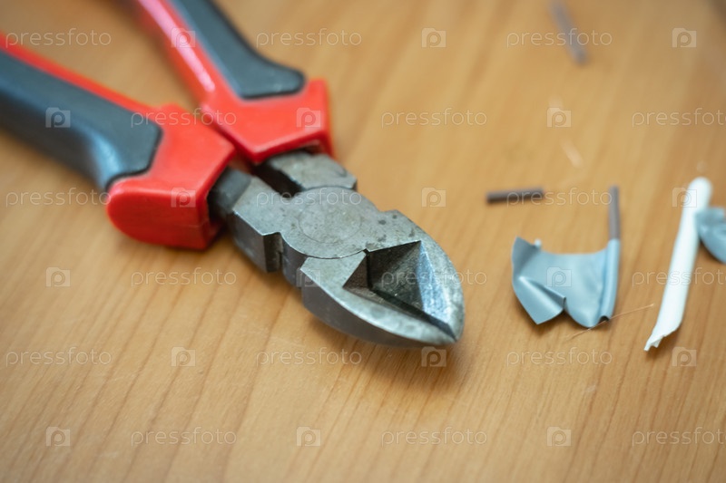 Электрические инструменты лежат на столе, крупный план, размытый фон
