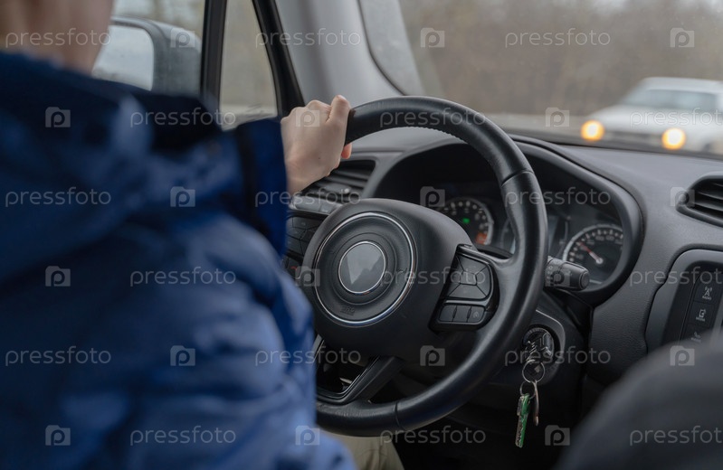 Девушка впервые водит машину