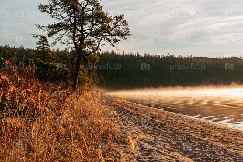 Утренний туман на озере озеро Джека Лондона, Магаданская область,Россия