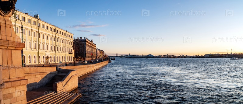 Вид на дворцовую набережную с Троицкого моста в Санкт-Петербурге