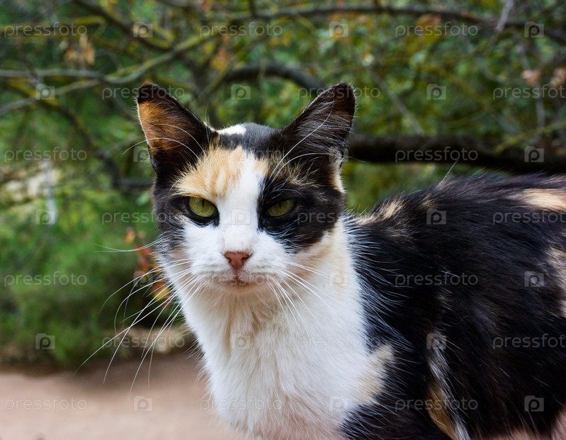 Портрет трехцветного кота в зоопарке города Алушты. Крым