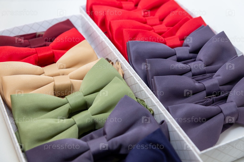 Витрина в магазине с красивыми разноцветными галстуками-бабочками