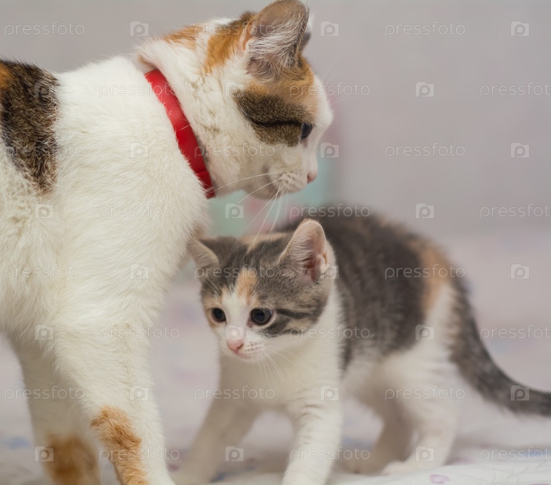 Кошка играет со своими котятами