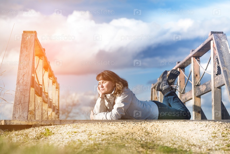 Милая женщина отдыхает на свежем воздухе