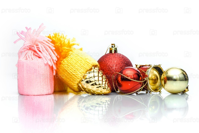 Новогодние игрушки на белом фоне