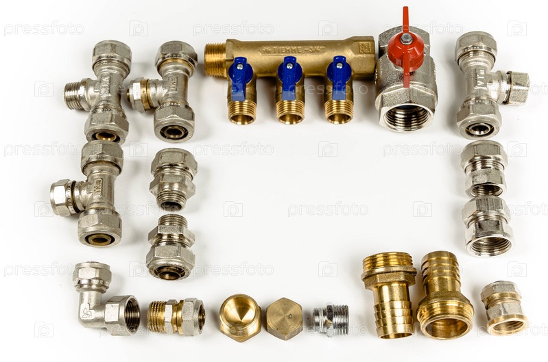 Сантехническая арматура и краны на белом фоне
