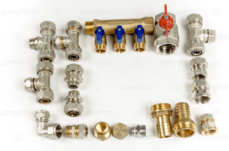 Сантехническая арматура и краны на белом фоне