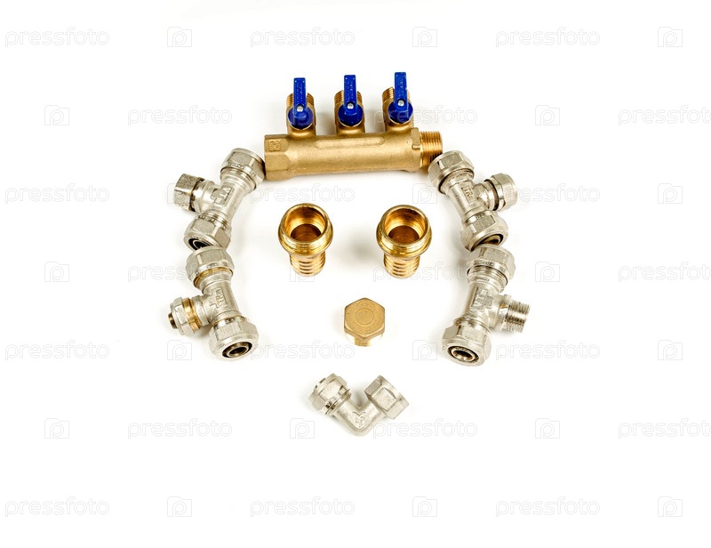Сантехническая арматура и краны на белом фоне