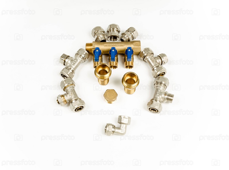 Сантехническая арматура и краны на белом фоне