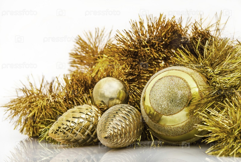 Новогодние игрушки на белом фоне