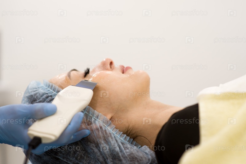 Чистка лица в салоне красоты - крупный план женского лица