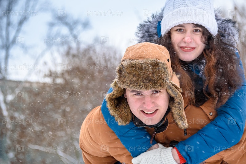Счастливый любитель парки в зимнем парке