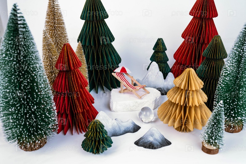 Рождественский фон с красочными елками. Новогодняя открытка