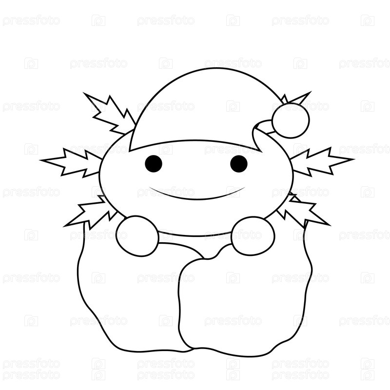 Милый мультяшный спящий Аксолотль с одеялом в черно-белом цвете